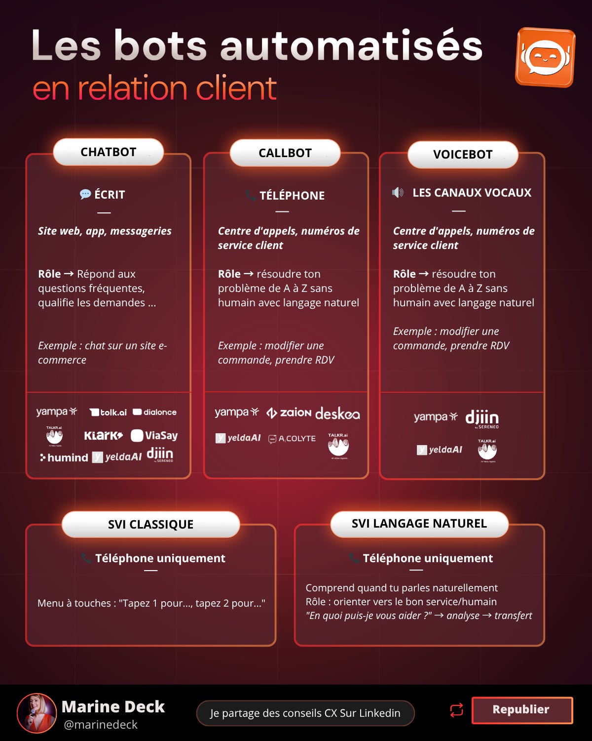 Chatbot, callbot, voicebot, SVI... On balance ces mots partout, mais personne ne prend le temps d’expliquer ce que c’est vraiment.